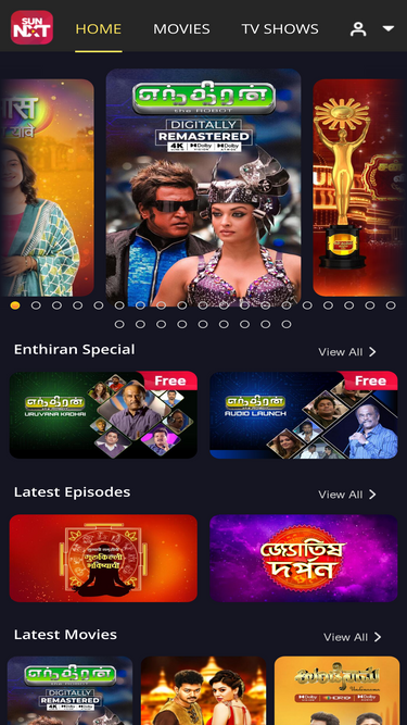 98%Watch the latest movies, TV shows, TV serials, news, comedy, and music videos in Tamil, Telugu, Malayalam, Kannada, Hindi, Bengali, Marathi and English on SunNXT. Unlimited entertainment at your fingertips!