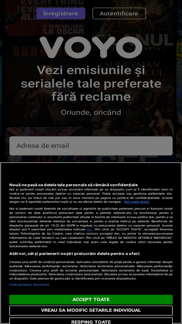 87%Intră în lumea entertainmentului online! Doar pe VOYO ai super-filme, cele mai noi seriale, producții TV românești de succes și transmisii sportive live.
