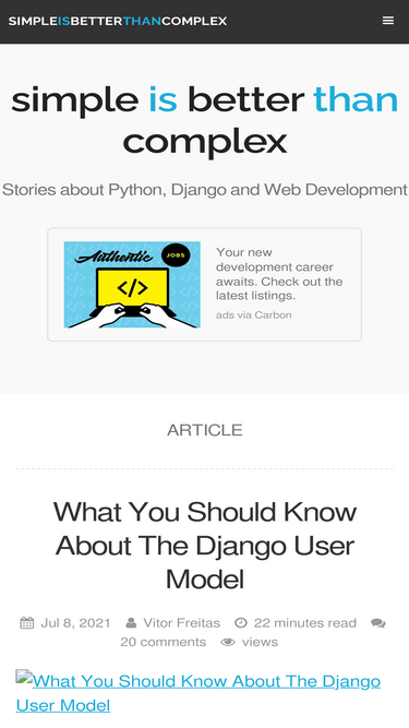 100%In this tutorial series, we are going to explore Django's authentication system by implementing sign up, login, logout, password change, password reset and p...