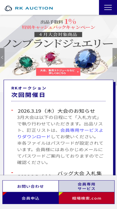 90%RKオークション公式サイト。お知らせのページです。