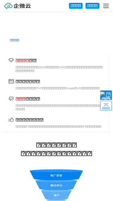 100%wescrm企微云是基于企业微信的私域营销及运营一体化saas平台。以赋能员工为出发点,围绕“流量接得住、沟通有工具、转化有方法、客户可经营”四个业务场景,主打【私域营销】【客户经营】【社群运营】【聊天存储】四大功能模块。不仅为客户提供一体化的私域营销工具,还提供私域营销陪跑服务,帮助企业最大化利用企业微信的私域营销能力,从根本上解决企业的增长难题。