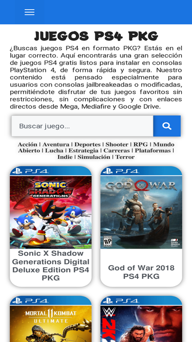 86%Descarga juegos para PS4 en formato PKG gratis, listos para instalar en tu consola PlayStation 4. Disfruta de una gran variedad de juegos actualizados.