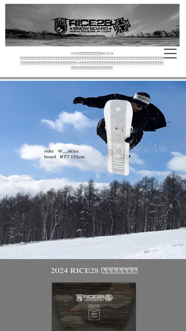 72%国産ドメスティックブランドの先駆けとして1995年からスタート。RICE28は老舗でありながら常に日本のスノーボードシーンをリードし今も尚、最高級のスノーボードをプロダクトしている。
