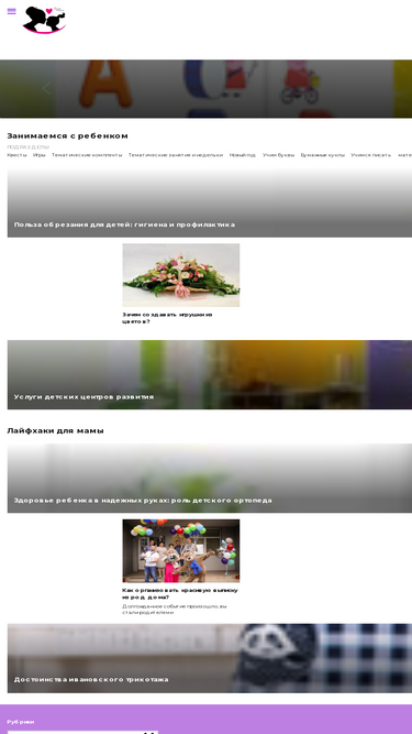 97%сайт для мам о развитии малыша. на страницах данного сайта вы найдете: интересные игры и развивашки; уроки по финансовой грамотности; рабочие секреты воспитания; советы по организации дома, времени и быта