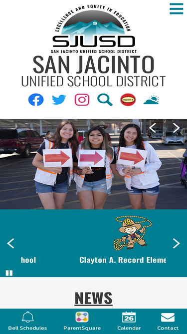 100%san jacinto unified school district serves grades pre-k through 12 and is located in san jacinto, ca.