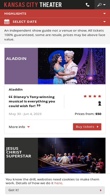 92%kansas city theater is your guide to shows in kansas city mo's theaters. find broadway shows, musicals, plays, stand-up comedy and concerts and buy tickets with us now.