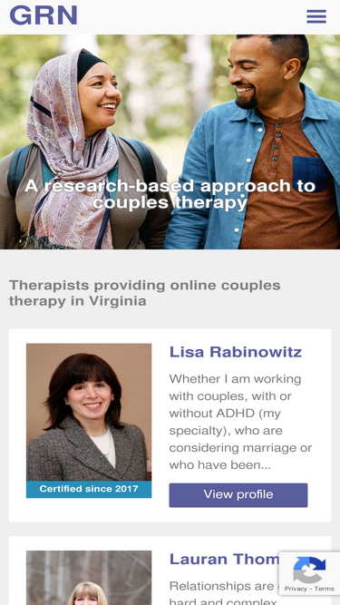 51%The Gottman Referral Network (GRN) is the primary resource for couples worldwide who are seeking professional help from Gottman-trained therapists. GRN members have received training in Gottman Method Couples Therapy, an approach based on 40 years of research with thousands of couples. Free to access, this database puts you directly in touch with experienced clinicians who use Gottman relationship-building techniques.
