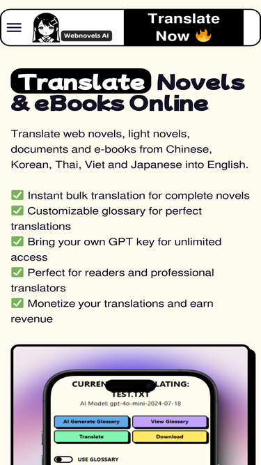 94%Try Simplified Chinese to English translation online for free with Webnovels AI. Translate novels, ebooks, pdf, and images in many languages.