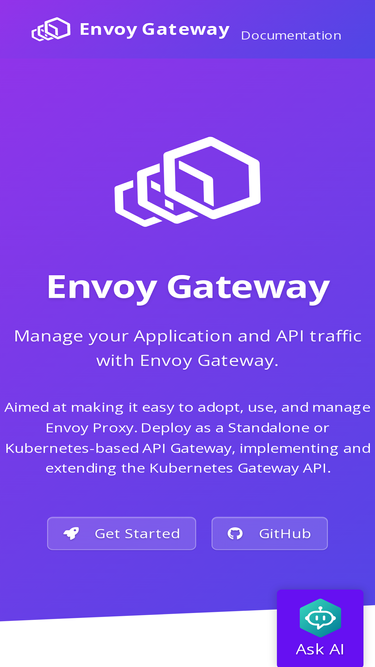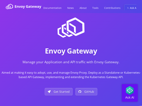 92%Envoy Gateway Manage your Application and API traffic with Envoy Gateway. Aimed at making it easy to adopt, use, and manage Envoy Proxy. Deploy as a Standalone or Kubernetes-based API Gateway, implementing and extending the Kubernetes Gateway API. Get Started GitHub Built together. Built in the open. Gateway is the result of the community coming together to make it easier than ever to leverage Envoy Proxy for your API Gateway needs.