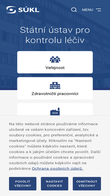 Úvodní stránky oficiálních stránek Státního ústavu pro kontrolu léčiv. Datum poslední aktualizace stránky 10. 3. 2025