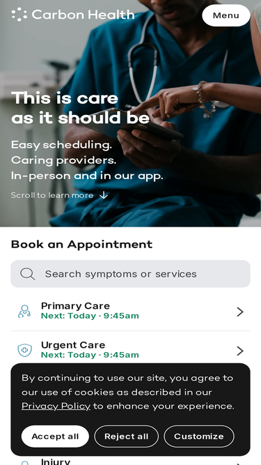 99%Carbon Health Provides Smart, hassle-free Primary & Urgent Care. Book same day Adult & Pediatric appointments instantly.