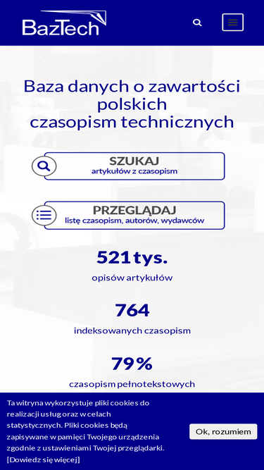 76%Cookies – Brief information on the website This website uses cookies to provide services and for statistical purposes. Cookies will be stored in the memory of your device according to the settings of your browser. Cookies policy The Cookies policy applies to the public service baztech.icm.edu.pl – hereinafter referred to as the service. Cookies are […]