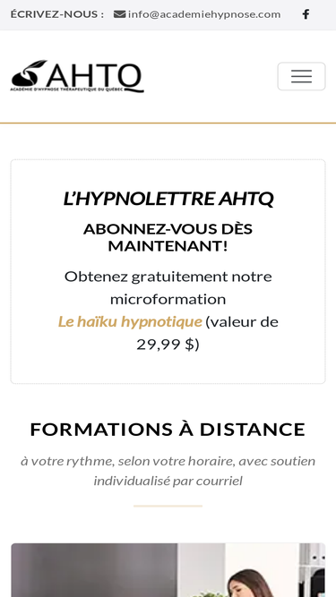 100%L'Académie d'Hypnose Thérapeutique du Québec (AHTQ) offre des formations en hypnose, formations continues et cours à distance.