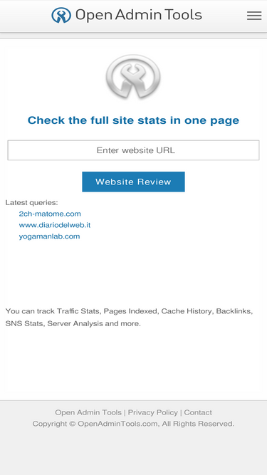 100%check the full site stats in one page you can track traffic stats, pages indexed, cache history, backlinks, sns stats, server analysis and more.
