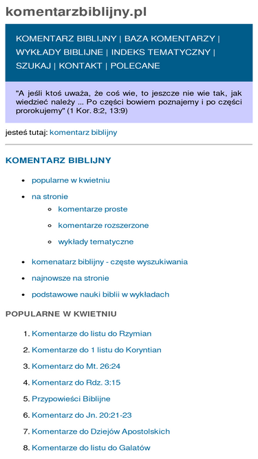 100%Bezpłatny Komentarz Biblijny online - zobacz komentarze do wersetów, wykłady tematyczne, streszczenia ksiąg Biblijnych, omówienie podstawowych nauk Biblii