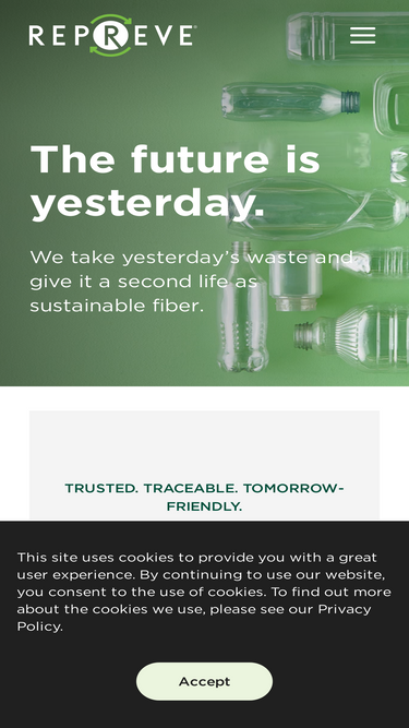 80%REPREVE® is the trusted, branded recycled performance fiber, used to make sustainable textiles with wicking, odor control, water resistance, and more.