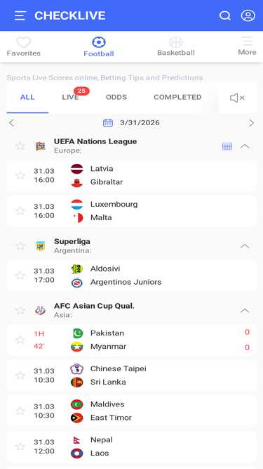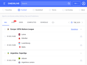 73%sports live scores page on checklive.com offers all the latest sports results from more than 1000+ football, hockey, tennis and basketball leagues all around the world including epl, laliga, serie a, bundesliga, uefa champions league, nba, nhl, nfl and more. find free predictions and betting tips all todays or tonight on checklive