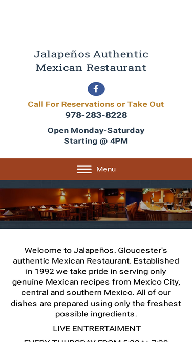 Our entertainment at Jalapenos Authentic Mexican Restaurant includes our live music with our Tuesday Night House Band. The Tuesday Night House Band features talented musicians such as Dan King, David Brown, Wolf Ginandes, and Dave Mattacks. They perform every Tuesday night 7:00 - 9:00 pm. Call us!