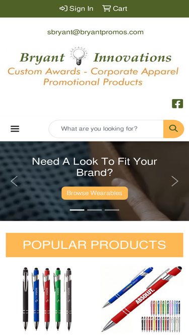 this site displays promotional products, apparel, and awards. products to be engraved, embroidered, or screenprinted.