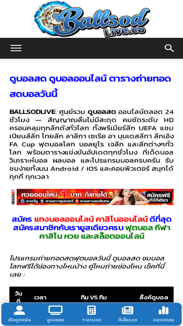 82%ดูบอลออนไลน์ บนมือถือก็ดูได้ ดูฟรีทุกลีกทุกคู่ ดูกีฬาดูบอลสด รวมลิงค์ดูบอล บอลสดพากษ์ไทย ดูบอลสดคืนนี้ได้ทุกคู่ พรีเมียร์ลีก ลาลีกา ไทยลีก ยูฟ่า ดูแมนยู ดูลิเวอร์พูล พร้อมตารางถ่ายทอดสดกีฬาชนิดอื่นๆมากมาย ดูได้จริง มีลิงค์สำรอง เลือกความชัดได้ ไม่มีกระตุก ไม่เสียอารมณ์ ต้องดูที่ ballmun.com