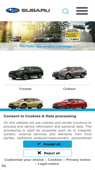 85%Allgemeine Informationen und Angaben für eine Kontaktaufnahme finden Sie hier im Impressum der SUBARU Deutschland GmbH.