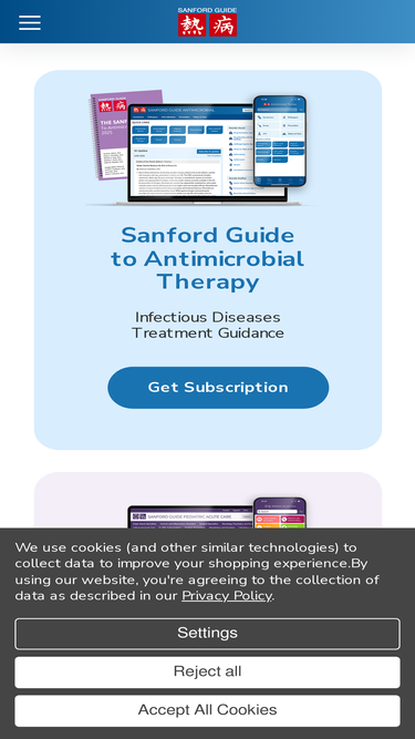 100%Download the Sanford Guide mobile app and subscribe for comprehensive infectious diseases treatment guidelines. Available on iOS & Android devices.