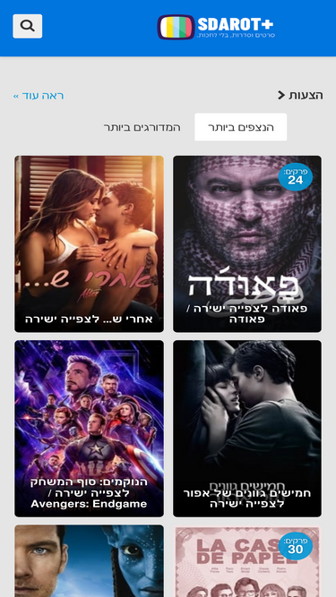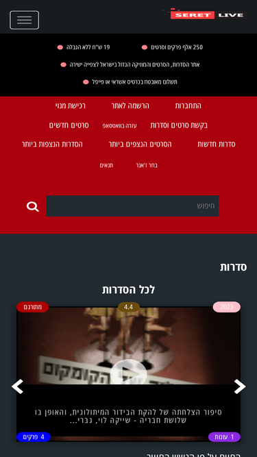100%אתר הסדרות והסרטים לצפייה ישירה המוביל בארץ. באתר תוכלו למצוא סדרות וסרטים להורדה ולצפייה ישירה בחינם, בקלות ובלי פרסומות. אין את הסרט או הסדרה שרציתם? תוכלו לבקש מאיתנו להעלות אותה.