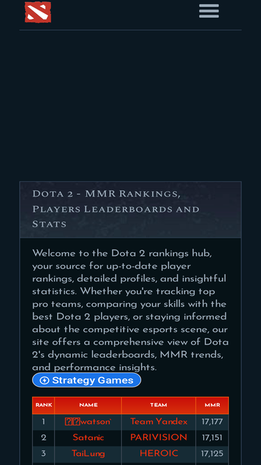 79%Explore the latest Dota 2 player rankings in Europe and discover top talents dominating the game in this region. View Europe players leaderboards, rankings, and performance stats. Updated daily for the most current stats and rankings.