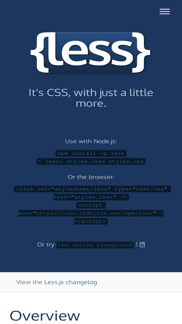 less extends css with dynamic behavior such as variables, mixins, operations and functions. less runs on both the server-side (with node.js and rhino) or client-side (modern browsers only).