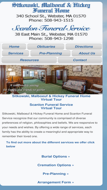 82%sitkowski, malboeuf & hickey funeral home, scanlon funeral service, webster, ma, servicing the webster massachusetts region families. family owned and operated. full burial and cremation services.