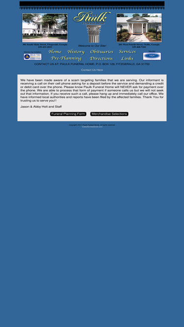 83%a family owned and operated full service with locations in fitzgerald and ocilla, georgia. site offers current obituary and service information.