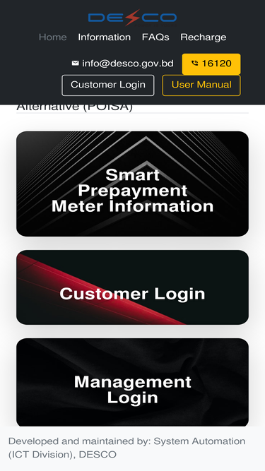 desco smart pre-payment metering homepage under platform of individual's service alternative (poisa). customer login to view meter balance, recharge and consumption information. videos on prepaid meters.