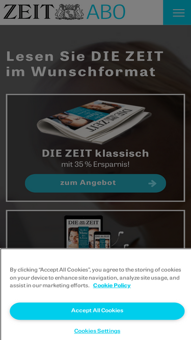 100%Wählen Sie DIE ZEIT im Wunschformat und erfahren Sie jede Woche das Wichtigste aus Politik, Wirtschaft, Wissenschaft & Kultur. Jetzt bestellen.