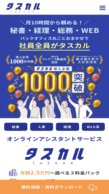 82%月10時間から秘書・経理・総務バックオフィス丸ごとおまかせで、社員全員がタスカル!