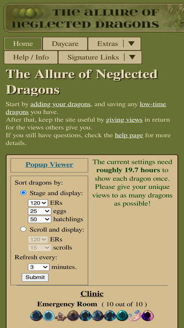 100%welcome to the allure of neglected dragons (a dragon cave fansite): with er, nest, and nursery for daily care, ars for neglected experiments, and more! give views, too!