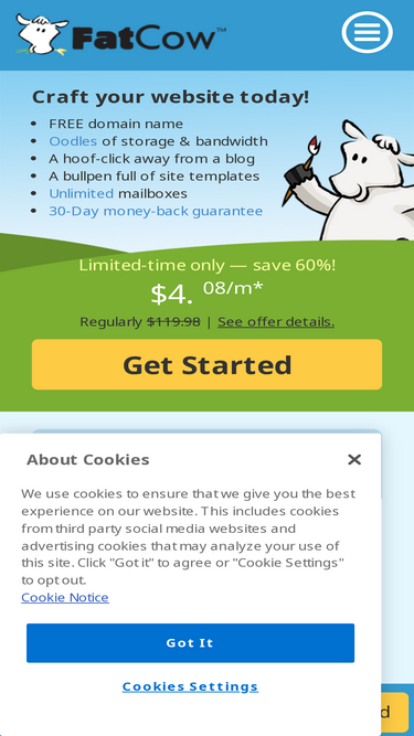 62%fatcow provides web hosting for small businesses & individuals. whether you're looking for a domain or complete web hosting solution, fatcow's got it!