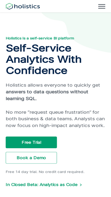 86%Holistics connects directly to your SQL database and help you build insightful reports on your data.