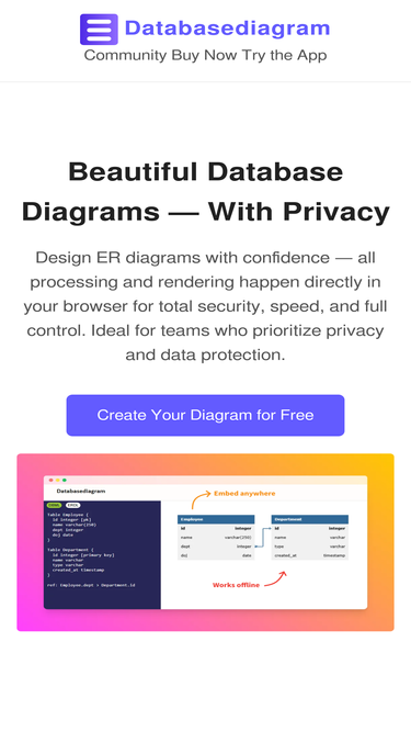 quick and simple free tool to help you draw your database relationship diagrams and flow quickly using simple dsl language.