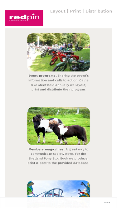 100%layout | print | distribution event programs. sharing the event's information and calls to action. calne bike meet held annually we layout, print and distribute their program. members magazines. a great way to communicate society news. for the shetland pony stud book we produce, print & post to the provided database. trade magazines. print is…