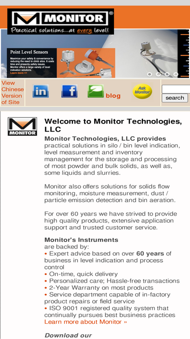 100%providing level measurement instruments for continuous level monitoring and point level control including bin level indicators, level switches, sensors and transmitters, inventory management, bin aeration devices, solids flow detectors, and particle emission monitors for the worldwide powder and bulk solids markets like grains, feed, flour & other dry ingredients, cement, flyash, sand, coal, plastics and more.