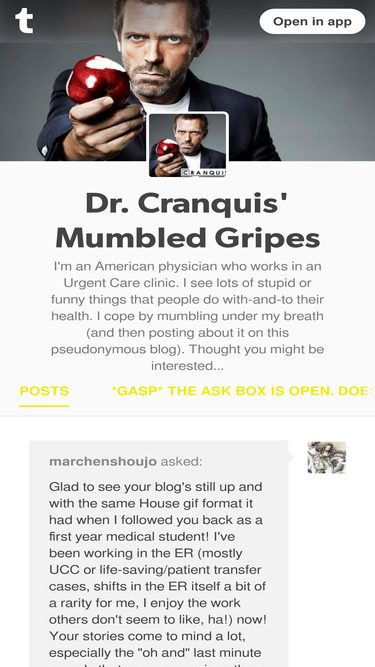 According to Similarweb data of monthly visits, drgrumpyinthehouse.blogspot.com’s top competitor in February 2026 is cranquis.tumblr.com. drgrumpyinthehouse.blogspot.com 2nd most similar site is physicianspractice.com, and closing off the top 3 is thedoctorblog.com.