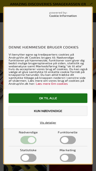 93%AndrupVin.dk tilbyder et kæmpe udvalg i vin online. Rødvin, hvidvin, rosévin, portvin ... Få din vin bragt til døren. Fri fragt fra 499,00 kr. og dag-til-dag levering alle hverdage.