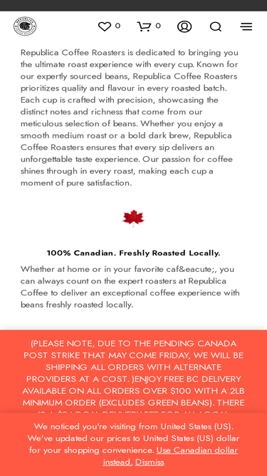 Experience the rich flavors of Republica Coffee. Check out our convenient online cart for easy coffee shopping.