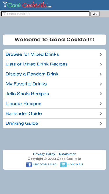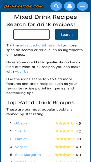 86%with thousands of drink recipes, you'll find the drink you're looking for here.you'll also find a large list of drinking games, user forums, and bartending tips.
