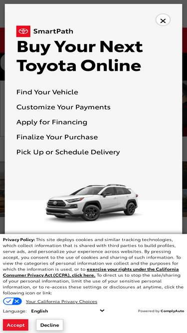 99%we're your local toyota dealership serving toms river, brick township, freehold, howell, jackson, and lakewood with sales, financing, service & parts.