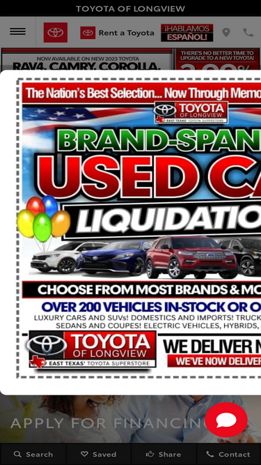 97%toyota of longview is proud to offer a selection of exceptional vehicles to drivers from nearby tyler, henderson and marshall, tx. visit us today!
