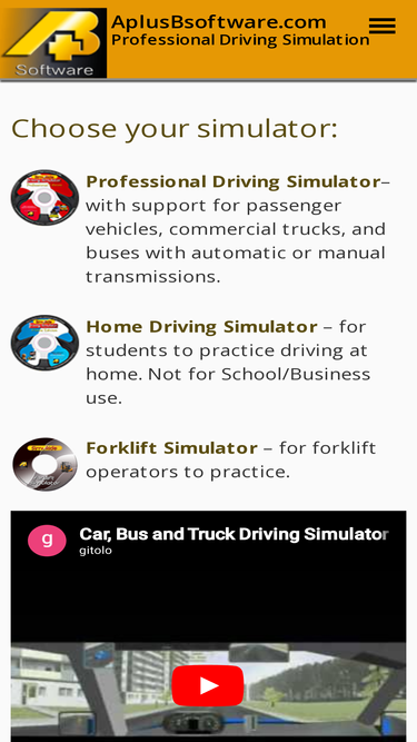 99%This is a top-down view driving simulator. You can drive cars, buses, and trailers on small cources.