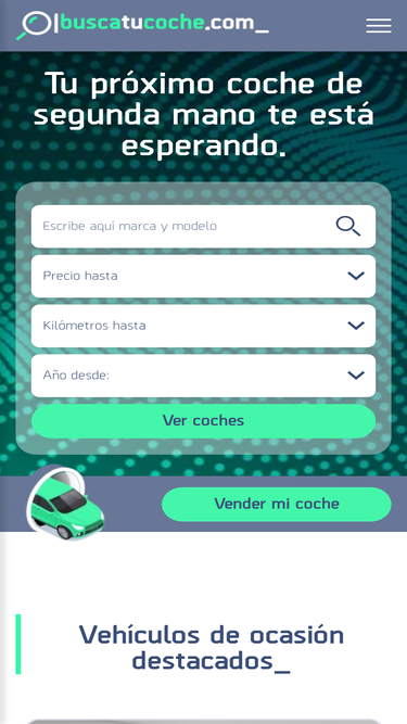 74%Nº1 en venta de coches online. Compra tu coche de Buena Mano, Km0 o seminuevo al mejor precio y en un clic, nosotros te lo llevamos a la puerta de tu casa en 48h. Pruébalo 15 días o 1.000km y si no te enamoras, te devolvemos el 100% del dinero en 24hs. Coches certificados en 320 puntos. Todas las marcas con hasta un 30% de descuento sobre nuevo. El 95% de nuestros clientes nos valoran con 5*