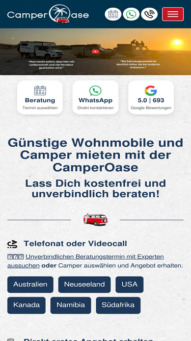 84%wohnmobile günstig mieten - weltweit ✓ kostenlose beratung für wohnmobilurlaub ✓ reiseziel finden und wohnmobil mieten ✓ expertise der camperoase✓