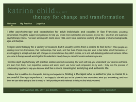 100%San Francisco psychologist in independent private psychotherapy practice. Long-term and short-term therapy. Personal and executive coaching. 25 years experience. Essays about relationships, the process of psychotherapy, hypnosis, client-therapist confidentiality.